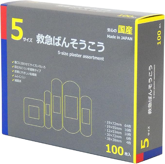 止血後のケアや軽度の外傷に使えるアイテムです。家庭内のケガで最も出番が多いアイテムといえます。